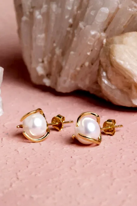 İnci Altın Kaplama Doğal Taş Küpe